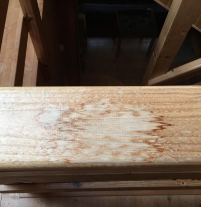 Lahti jäetud katuseakna tõttu veekahjustusega põrandaosa (1-2 m2) ja käsipuu lihvimine ja lakkimine