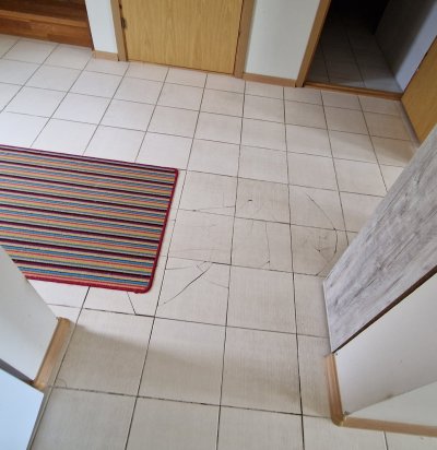 Vajunud põranda tasandamine, vanade plaatide eemaldamine ja uuesti plaatimine