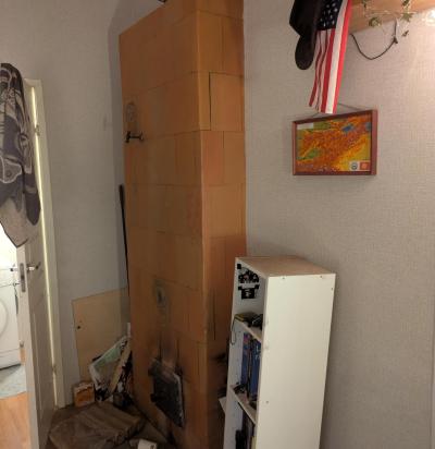 Vana pliidi lõhkumine. Praeahi seal kõrval on suht alles pandud, see jääb. Uue pliidi ehitamine. ehitamine