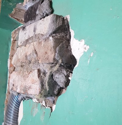 Pottahju küttekolde võlvis on kivi lahti ja võlvist välja vajunud