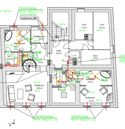 Projekteerimine. Eramu vee-, kanali-, kütte- ja ventilatsiooni põhiprojekt/tööprojekt.