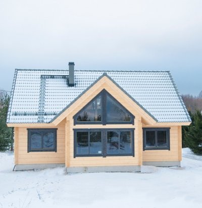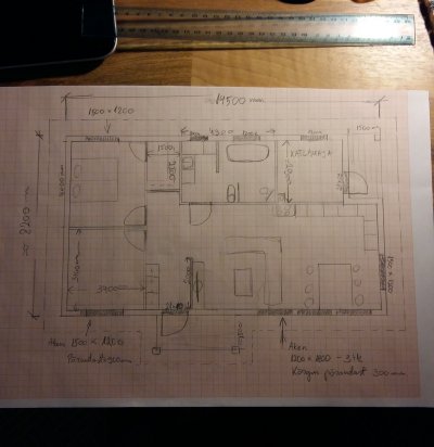 Väikemaja/suvemaja projekti ~44m2. (räästa serva jälg õhust vaadatuna).