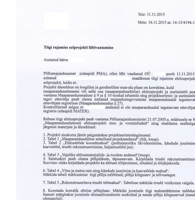 Tiigiprojekti täiendus ehitusloa saamiseks