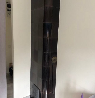 Ahju kõrval oleva kipsseina lammutus, krohvimine ja tahmaluugi asukoha muutmine