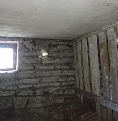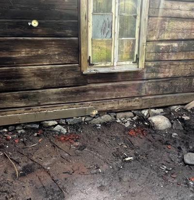 Osaline alumiste palkide vahetus rehetoa suurusel hoonel. Vundamendi korrastus, katuse ehitus, kaks katusega ja laudpõrandaga viilualust