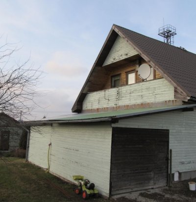 Puidust autode varjualune ja majale puidust trepp piiretega