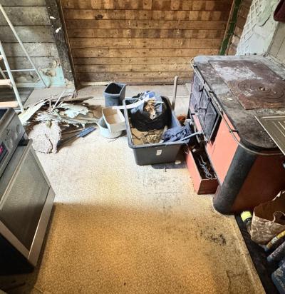 Seina lammutus, tugi palkide plommimine, uue seina ehitamine.