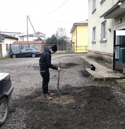 Kanalisatsioonitorude paigaldamine, et ühendada maja kanalisatsioonisüsteem otse Võru linna kanalisatsiooni süsteemiga. Asfaldi eemaldamine ning äärekivide ja unikivide paigutus.