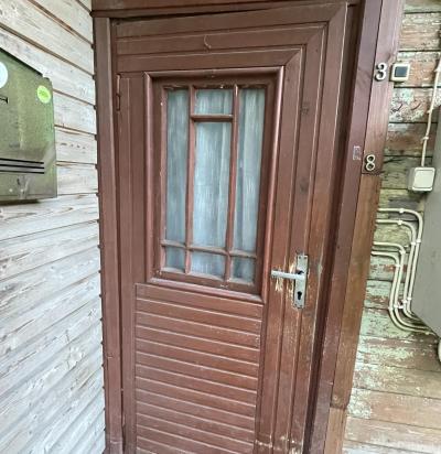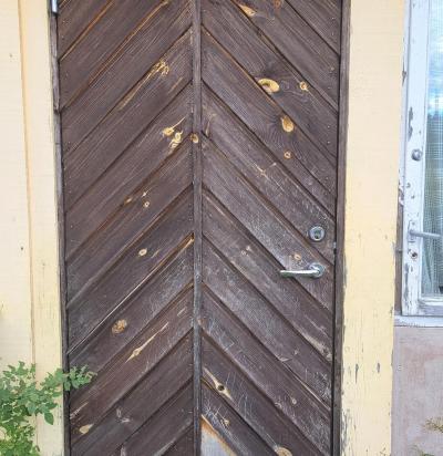 Puidust välisukse paigaldus koos akna kohal paikneva aknaga