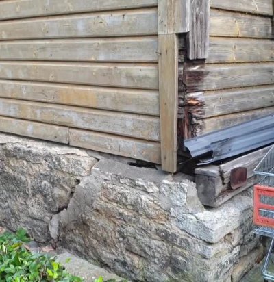 Vana talumaja alumise palgi vahetus, vundamendi korratamine