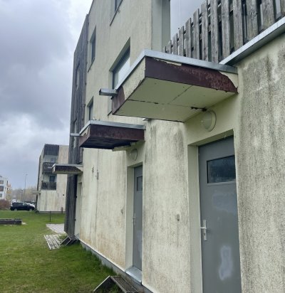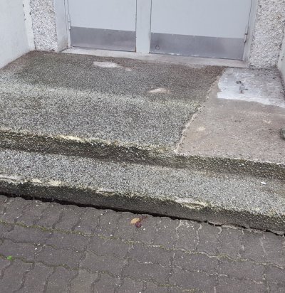 Kahe trepikoja välisuste ümbruse renoveerimine, sealhulgas vanade esiste lammutamine, aluspõhjade taastamine ja karedapinnalise betoonpinna valamine