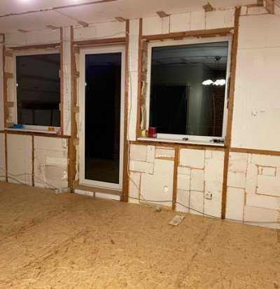 Maja krohvimine ja aknaprofiilide paigaldamine.