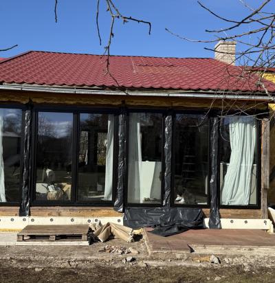 Välisfassadi ja tuulekastide vahetus ning maja soojustamine.