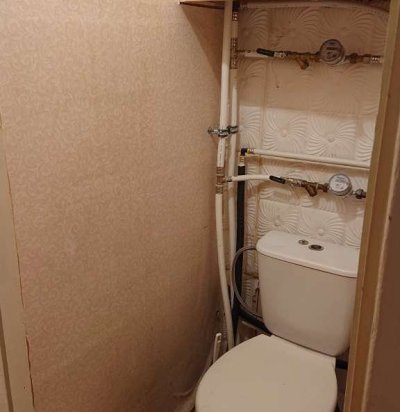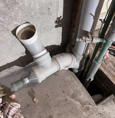Замена стояка, вывод канализионной и водных труб через пол коридорчика в большую комнату для кухни
