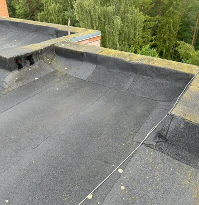 Katuse vahetus koos korstnate ülesehitusega kolmekordses majas. aluspindala 402 ruutmeetrit
