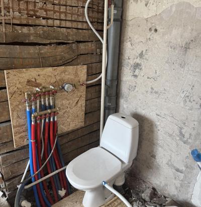 Ilmselt töö santehnikule, vedada kanalisatsioon wc potile ja veetorud dussile. Samuti kraanikausile ja ka kööki. Hiljem vannitoa ehitamine. Tegemist on korteriga.