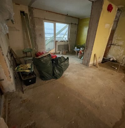Esikuseina lammutus ja garderoobikapi seina ladumine