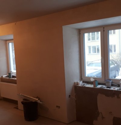 Korrusmajas Mustamäel 3 t. korter lagede ja seinte ettevalmistus värvimiseks. Seintelt tapeet kõrvaldatud.