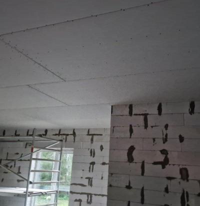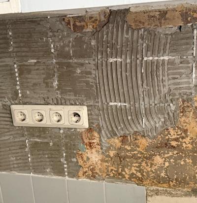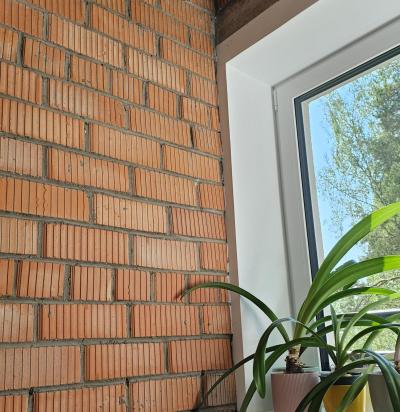 Rõdu seina krohvimine. Hetkel punase tellisega, mis oleks vaja krohvida ja värvida.