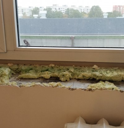 Lae + aknapõskede + aknalaua pahteldus ja värvimine.