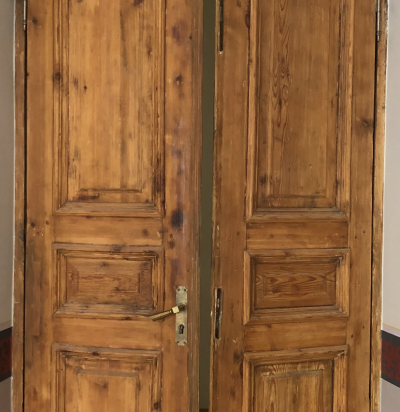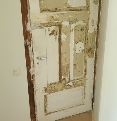 Puit ukse ja lengi puhastamine lahtisest värvist, pahteldamine ja värvimine