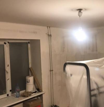 Vaja pahteldada, lihvida mõnedes kohtades ja värvida seinad ja lagi.