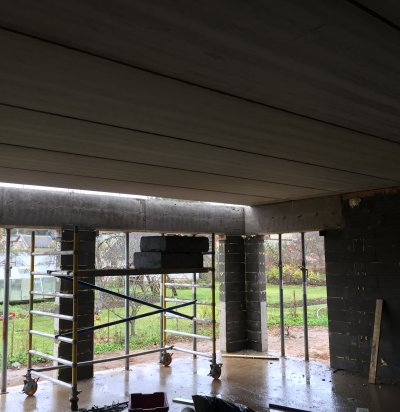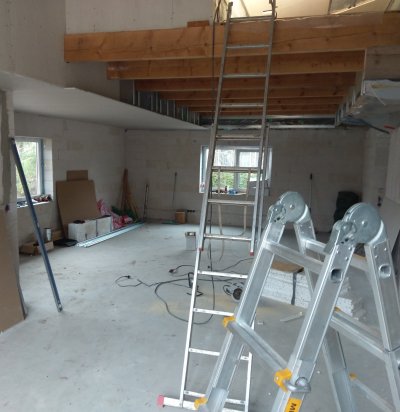 Lagedil eramaja elutoas kipsplaatide panek + viimistlus