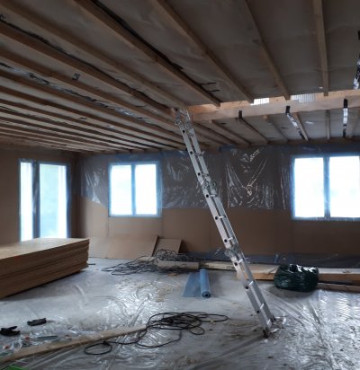 Col kivi seinte krohvimine ja pahteldus, lae pahteldus ning aknapalede viimistlus