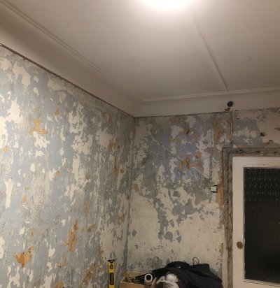 Vaja pahteldada, lihvida mõnedes kohtades ja värvida seinad ja lagi.