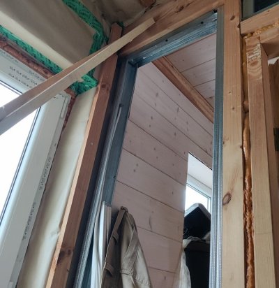 Vana palkmaja siseseinte ja lagede rihtimine metallkarkassiga. Osb ja kipsplaadi paigaldamine