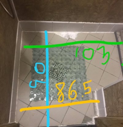Duššinurga plaatimine, kokku 6,8 ruutmeetrit.