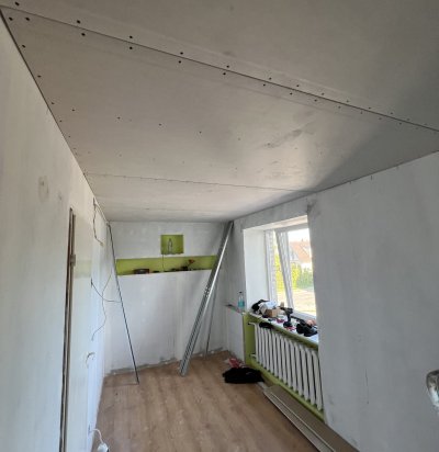 Vahtplast kipsplaatide paigaldus kaldlagedele + pahteldus+ värv