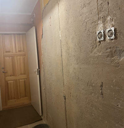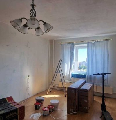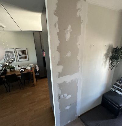 Korteri elutoa seintelt struktuurvärvi eemaldamine ja seinte pahteldamine ning lihv