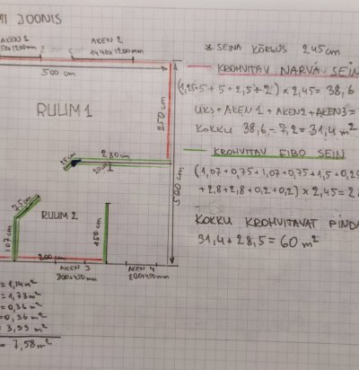18 m2 köögi lae, seinte, põranda pahteldus ja värvimine, lisaks 14 m2 toa lae pahteldus ja värvimine. Hinnad näidata eraldi.