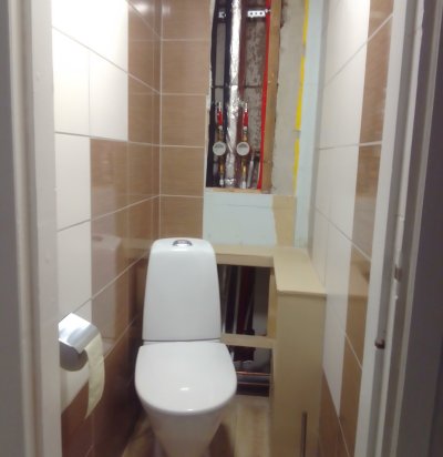 WC tagaseina remon. Seoses majas toimunud püstakute vahetusega, oleks vaja taastada WC tagasein (luukidega), mis katab šahti ja taastada kapike mis varjas torusid ja veefiltreid. Eemaldada veeboiler ja ja sellega seotud üleliigne torustik vannitoas