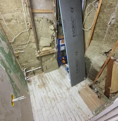 Dušinurga lammutus, uue dušikabiini paigaldus