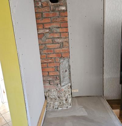 Siseruumides mitme seina kipsplaadiga katmine ja ahjupealse ava täisehitamine