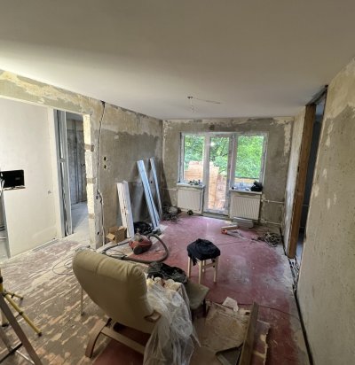 Seina ja korstnajala krohvimine + põranda korda tegemine