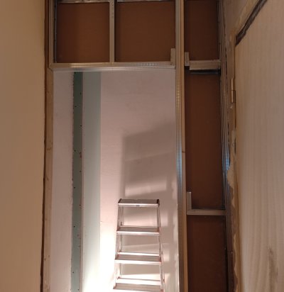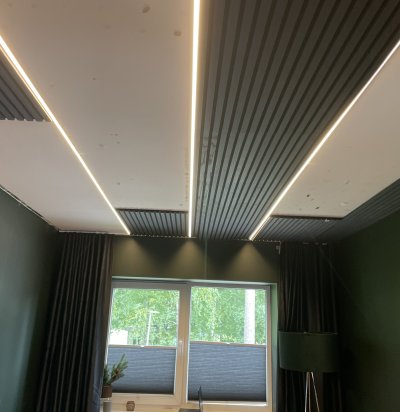 Kipslae paigaldus, koos laevalgustitega, korteri koridori.
