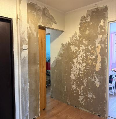 Paneelmaja korteri seinte lauspahteldamine, lihv, kruntimine. (~150m²)