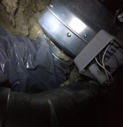 Ventilatsioonitoru paigaldus kubu ja seina vahel.