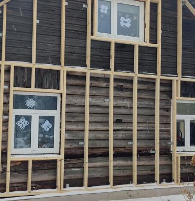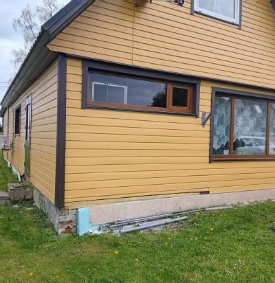 Eramaja otsaseina soojustamine ja voodrilaua paigaldus.