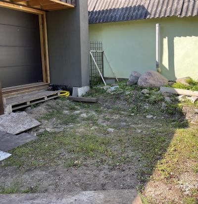 Eramaja tänvakivi ehk parketi pagaldus.vana kivi ülesse, uus sängitus, tihendamine ja kivi tagasi.