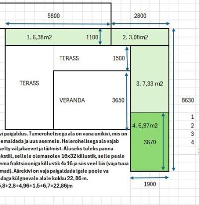 Vana betooni üles võtmine, viimine prügilasse ja tänavakivi paigaldamine ca 8 m2