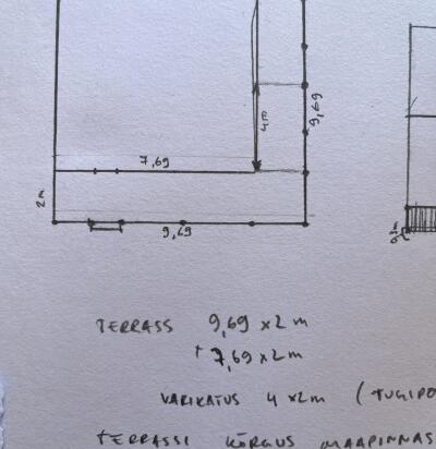 Olemasoleva terassi (50 m2) piirdekarkass+varikatus