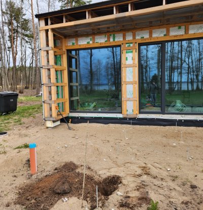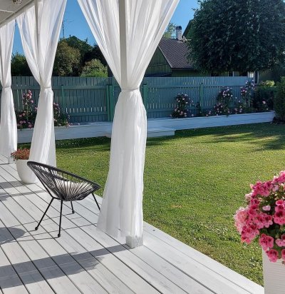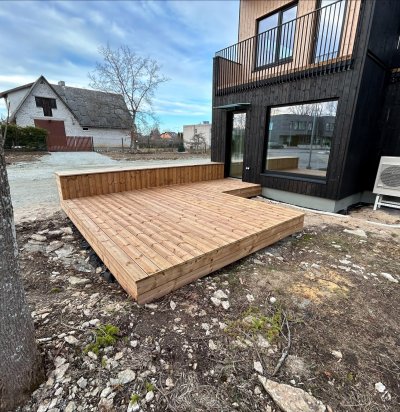 Puitkomposiit terrassi laudade ja karkassi paigaldus.