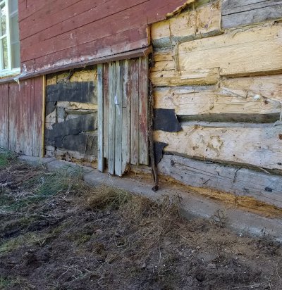 Palkmaja alumise palgirea vahetus ja vundamendi parandamine