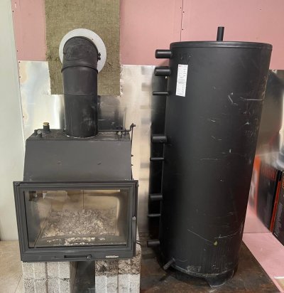 Veesärgiga kaminasüdamiku ja akumulatsioonipaagi ühendamine