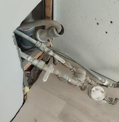 Nõukaaegse kanalisatsiooni toru vahetus.Köök>vannituba(leke)>wc