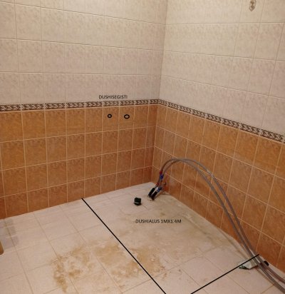 Vannitoa põranda tõstmine, valamine, kallete andmine.
